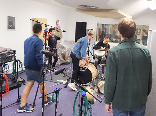 After introducing the ARU studios to the participants, the session started with drum tuning and mic selections/placements, including the use of classic Coles overheads. By the end of the day, all the drum tracks were captured and editing had begun!